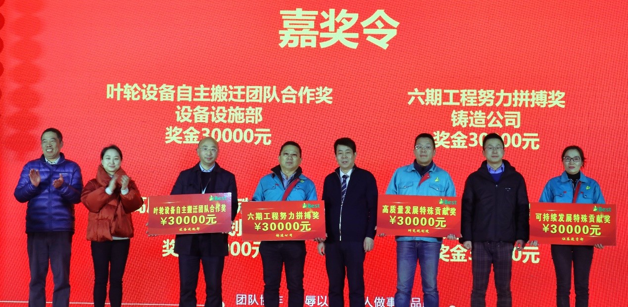 叶轮设备自主搬迁团队合作奖、六期工程努力拼搏奖、高质量发展特殊贡献奖、可持续发展特殊贡献奖